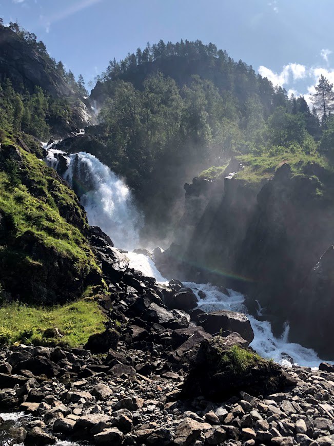 Зранку п’ємо каву і на поромі вирушаємо досліджувати Берген, та його набережну Брюгге. Мандрівка по форду на паромі займе кілька годин, але це того варте, біля міста Norheimsund ми заїдемо до водоспаду Steinsdalsfossen, це водоспад, за який можна зайти і торкнуться його потужного потоку з іншого боку.
